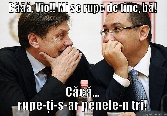 Și acum mă întrebați ce treabă are sula cu prefectura? Să vă explic (mi-am găsit meserie, daca tot mi-s șomer: explicator-matrițier) Useleul s-a fondat pe ura față de regimul băsist (ca sa le folosim termenii). Nu, nu încerca să te minți că pentru altceva. Chiar pentru asta s-a fondat. Vezi dovadă: discursurile de reunificare uselistă din ultimele zile de proto-ruptură. Mai exact, cei care făceau apel la unitate aduceau în minte proiectul de dat jos dictatori. Deci este clar, mesajul direct este jos tiranul chior-bețiv. Apoi, neicusorule, dar oare istoria nu arată (cum încercat-am sa demonstrez anterior) că nu există proiect bazat pe ură care să reziste? Ia-l pe Adi (cum, nu știi cine-i Adi? Zis și Dolfi? Nu?) sau pe alți amici de-ai lui drept exemplu. N-ai cum. Poți face un proiect, o idee să reziste dacă este fundamentat pe frică. Asta da. Trăiască Niccolo că a zis astea înaintea mea. Dar soluția uselistă care a fost? Jos regimul băsist!! Cum, n-am reușit? Poi și cum îl dăm jos? A, nu-l mai dăm? Coabităm? Până când? Până la alegeri? Și cine candidează? Nu de la el, de la noi! A, Antonescu? Tot cu escu? Facem pariu?