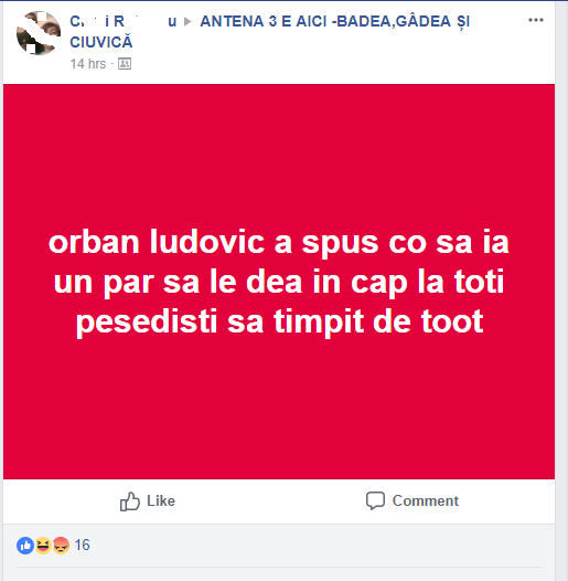 – Oamenii nu prea fac diferența dintre un troll și un postac adevărat al Antenei 3. Există un băiat care postează cam peste tot chestii pline de greșeli gramaticale care nu prea au sens. Nu e nici primul care informează pe un subiect, nici singurul care emite părerea, dar o face mereu la fel. Iar profilul lui indică aproape clar că e troll. Vreau să fie troll, că dacă nu, e o formă mare de tristețe dacă oamenii urmăresc un asemenea idiot.